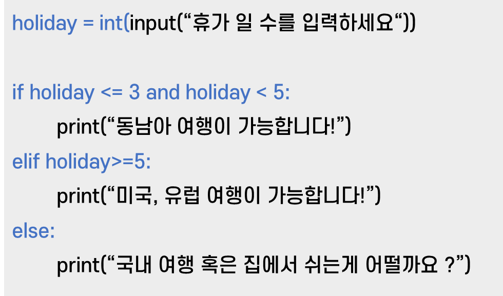 하지만 if와 elif의 조건 둘 중 어느 곳에도 속하지 않는다면 else구문의 코드가 수행되게 된다.