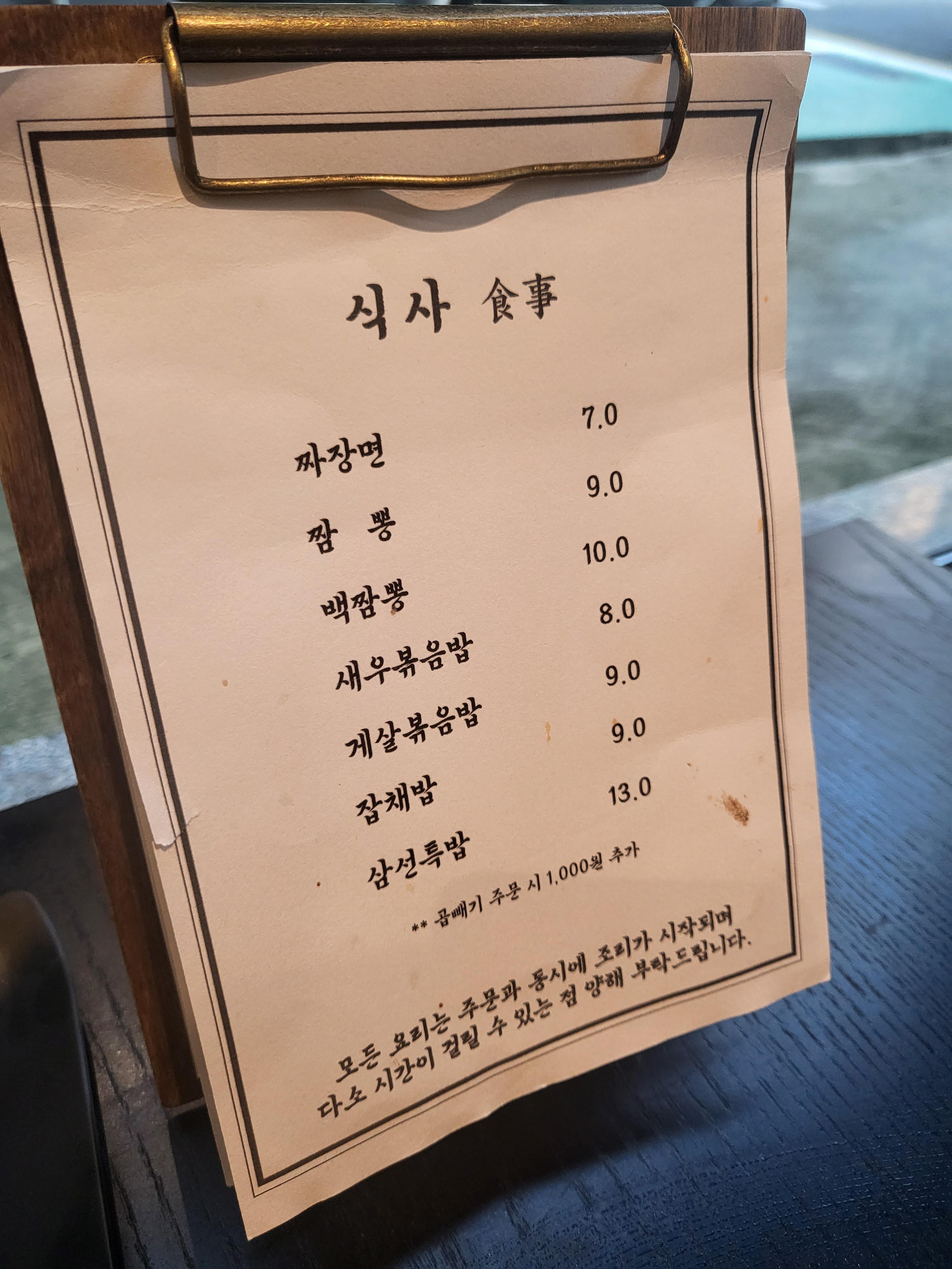 메뉴입니다. 기본적인 식사 메뉴에 중화요리집에서 파는 왠만한 요리들은 다 있었어요.