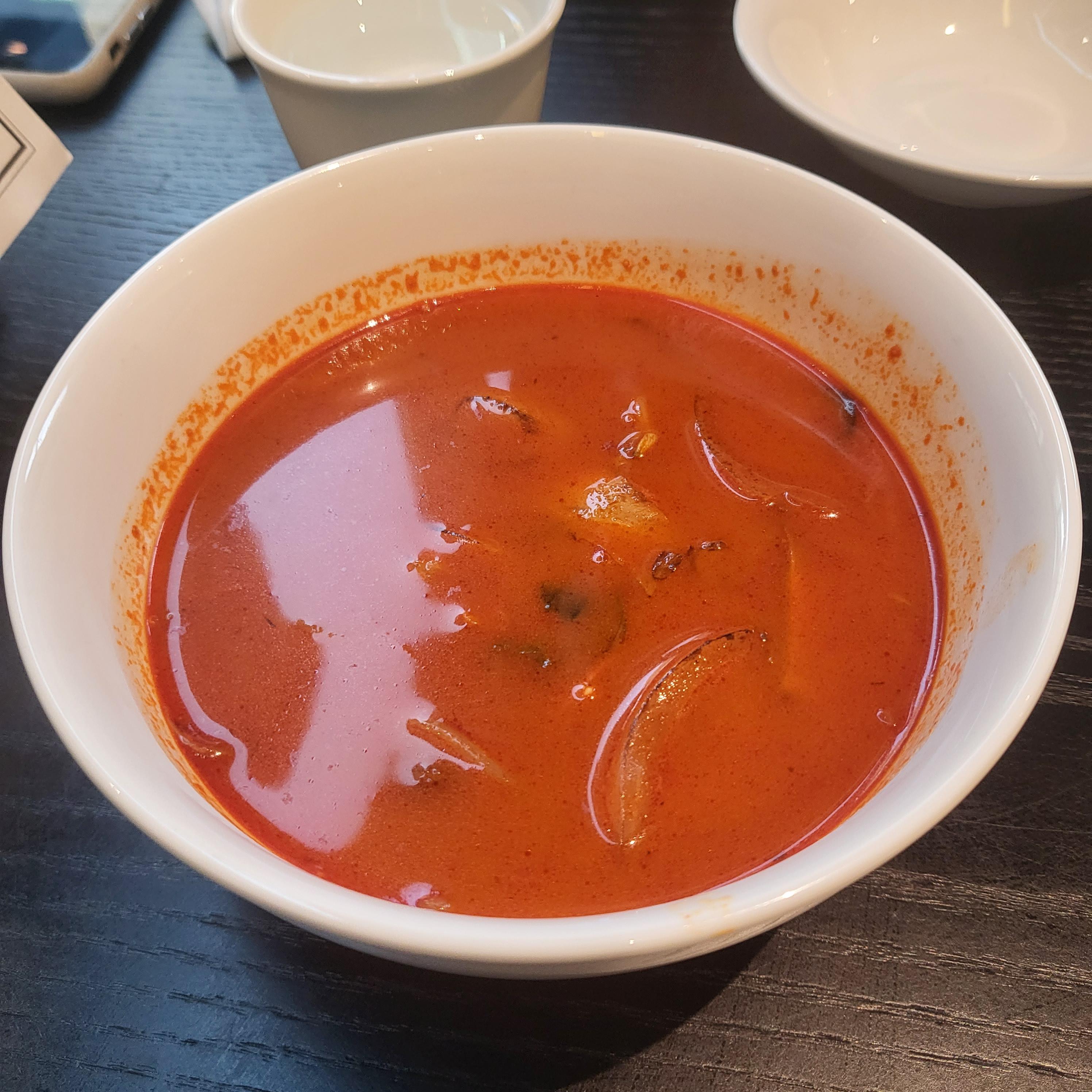 요리를 시켜서 그런지 짬뽕국물을 같이 주셨는데요. 안에 바지락과 해산물류도 많이 들어있고