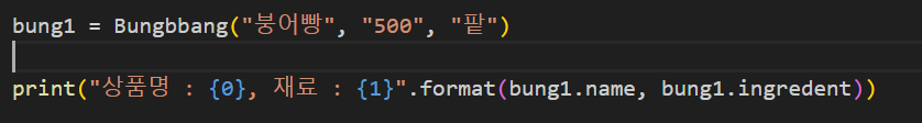 bung1은 bung1만의 이름,가격,재료, 메소드를 가지게 되고 bung2, bung3도 마찬가지로 가지게 된다.