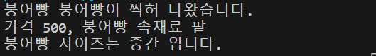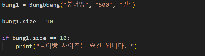 외부에서 붕어빵 사이즈를 정의하고 적용이 되었는지 if문을 통하여 확인해 보았다.