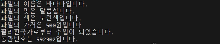 banana1 = Banana('바나나','달콤','노란색','500원','필리핀','592302')
