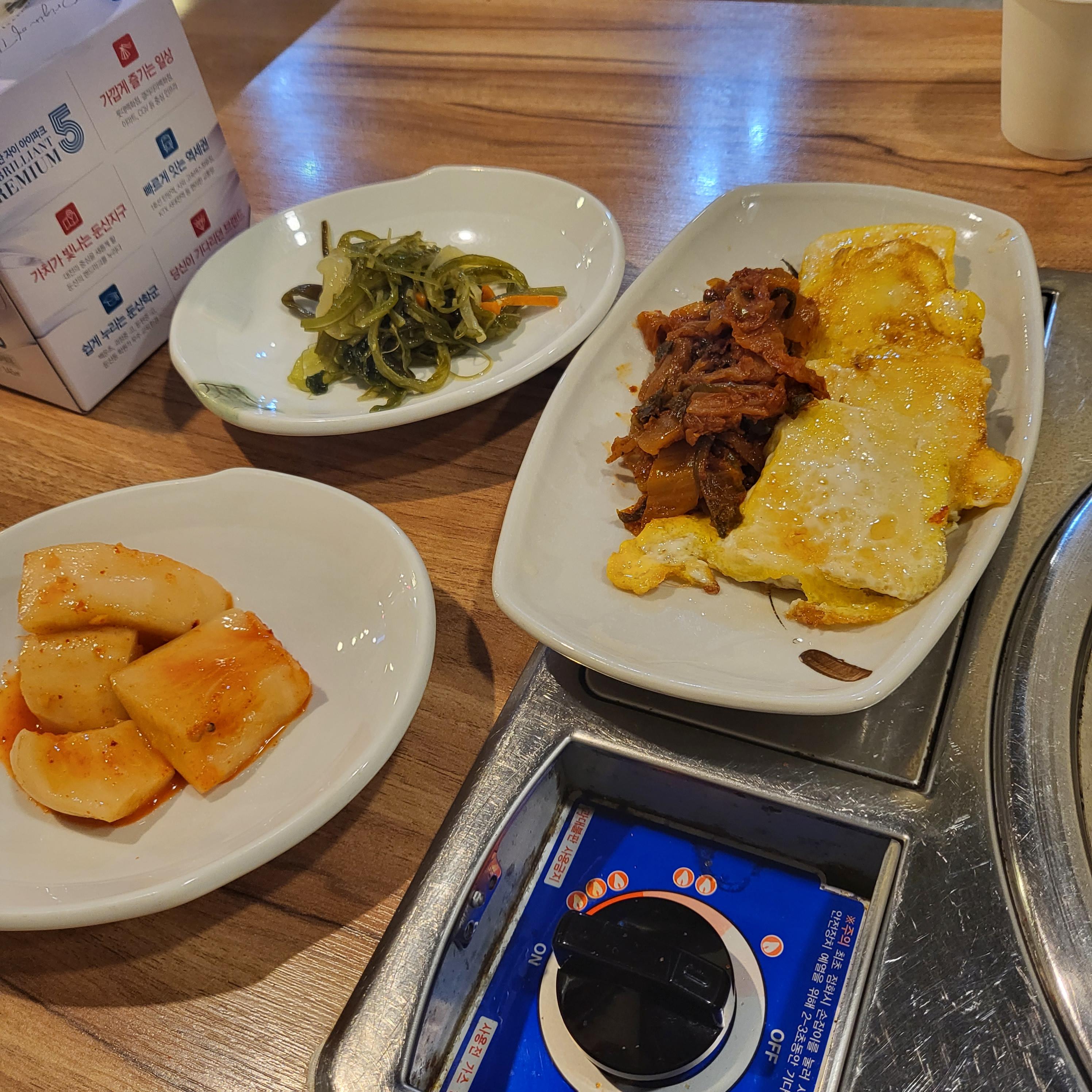참고로 밑반찬들은 감자탕이나 닭볶음탕 시켰을 때 나오는 거 같더라구요~
