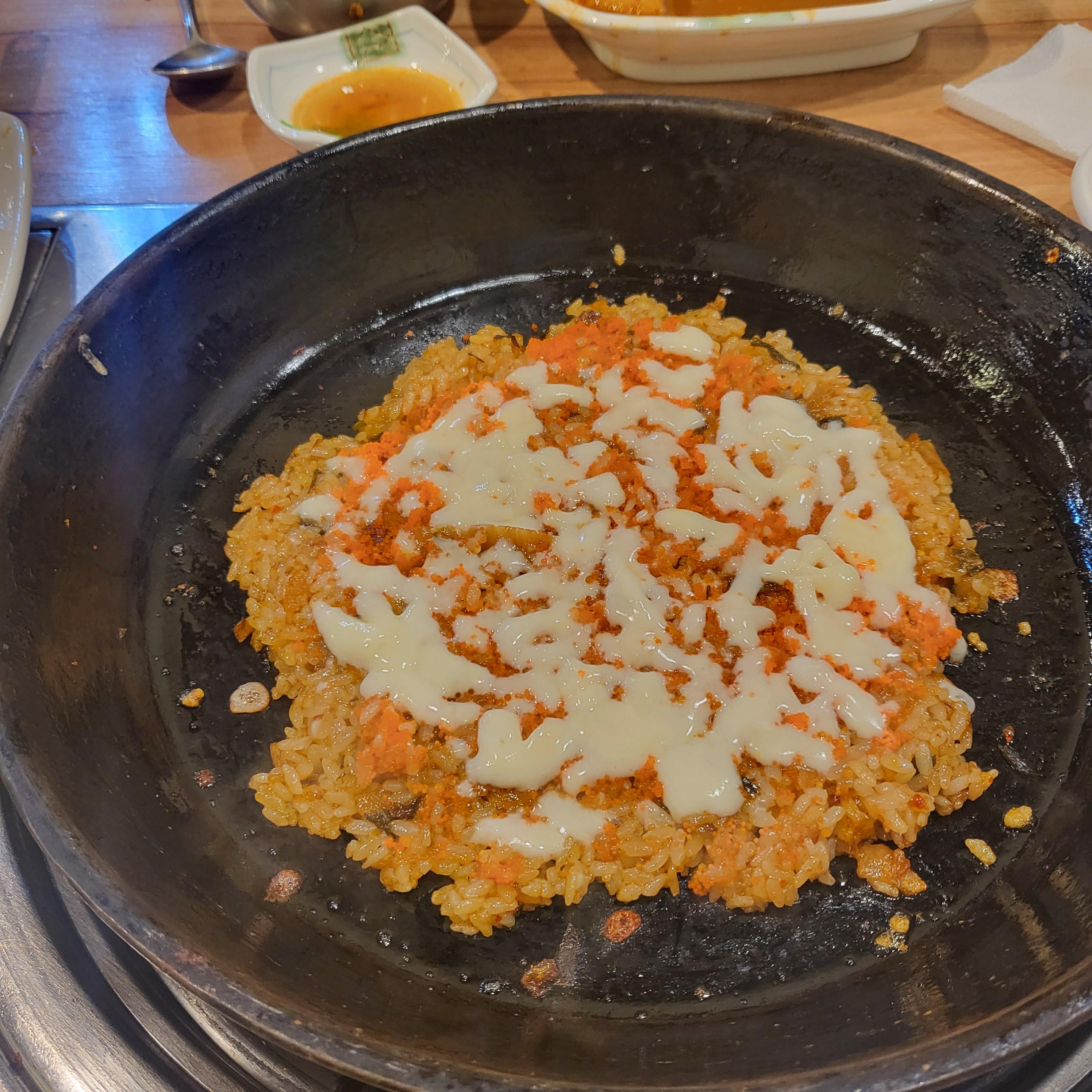 감자탕을 싹싹 다 먹고 감자탕에 빠질 수 없는 날치알 치즈 볶음밥을 시켜보았습니다.