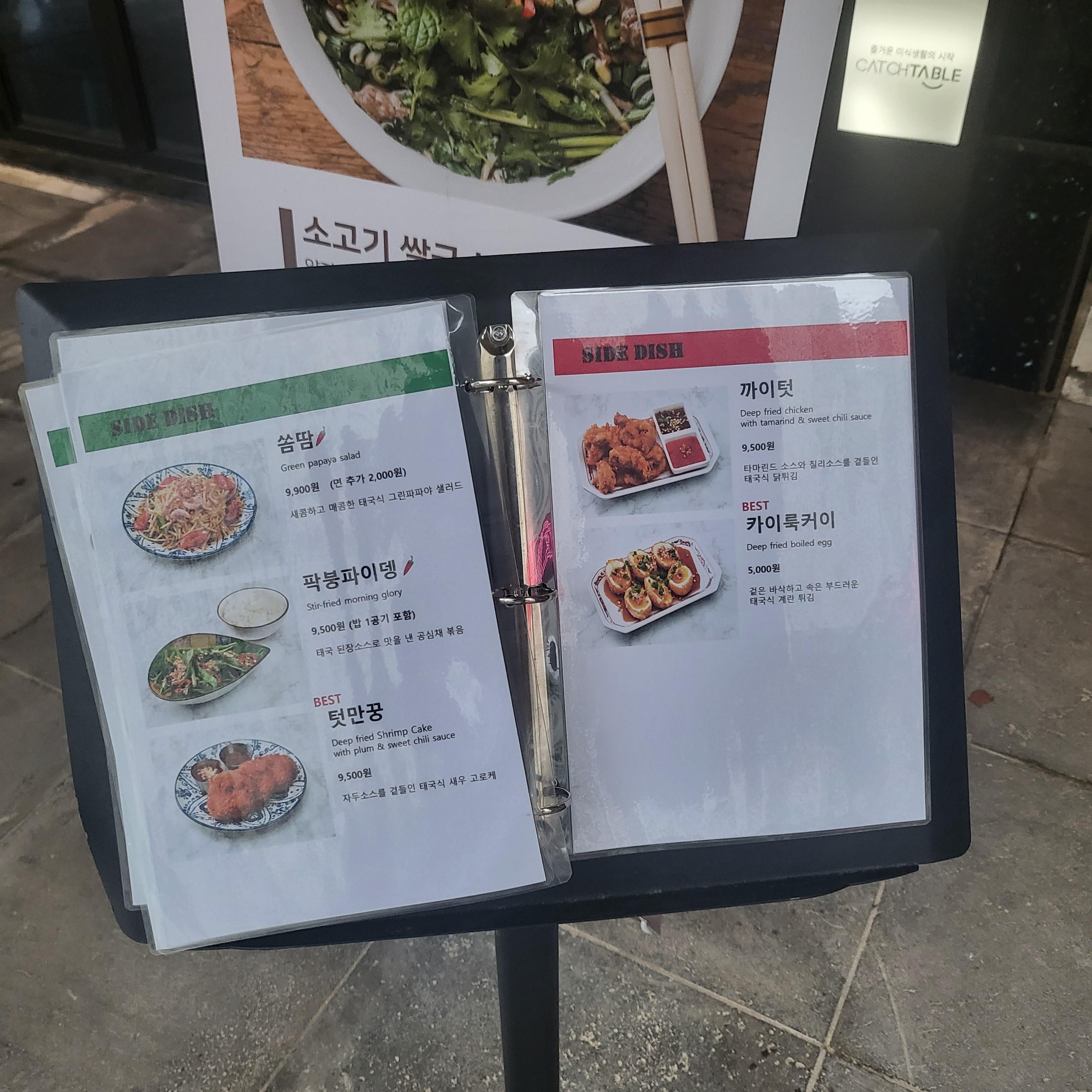 어떤 것을 시킬까 고민하다가 쏨땀과 카이텃(태국식 치킨)을 시켰습니다.