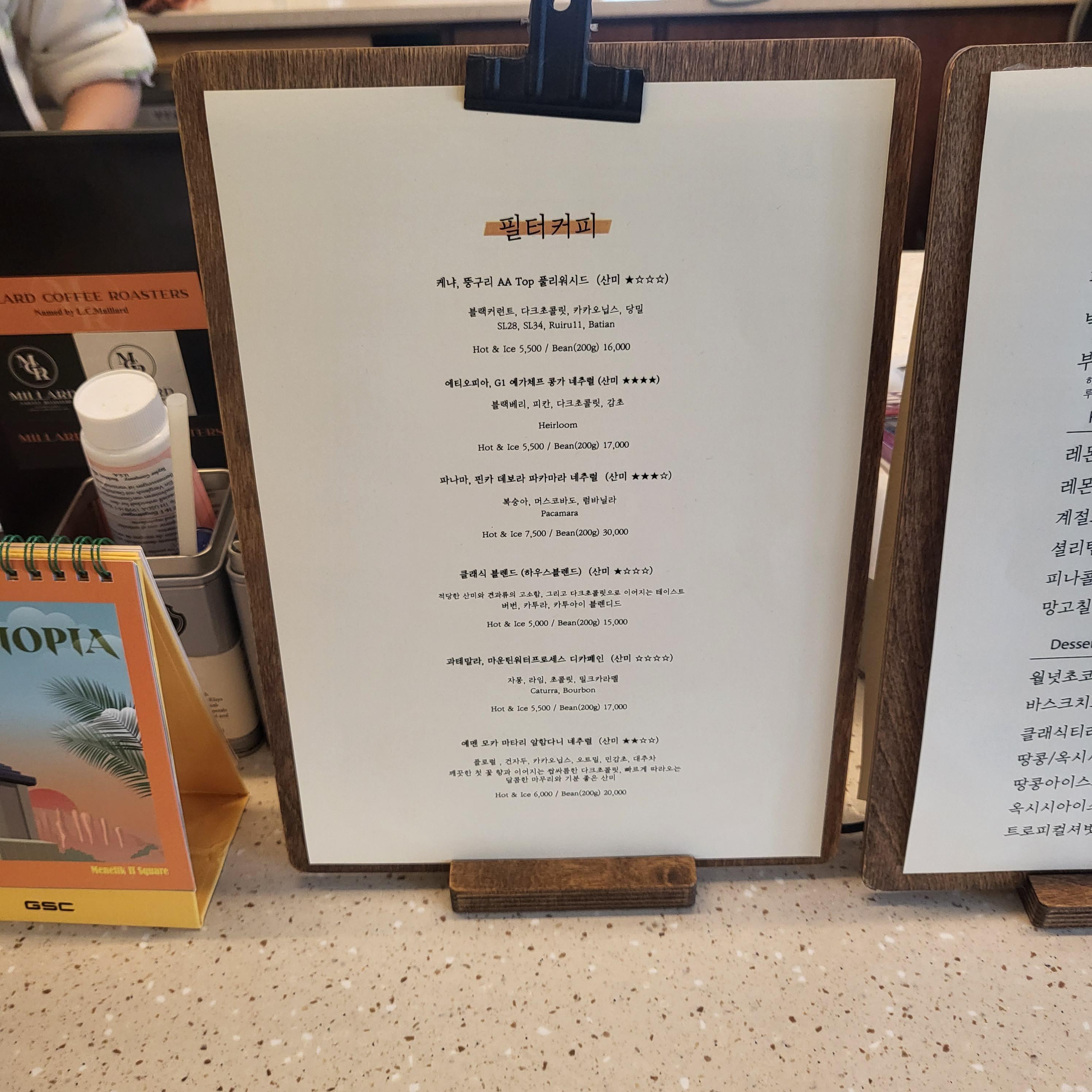 근본 있는 커피집은 필터 커피(드립커피) 종류를 많이 파시더라구요!