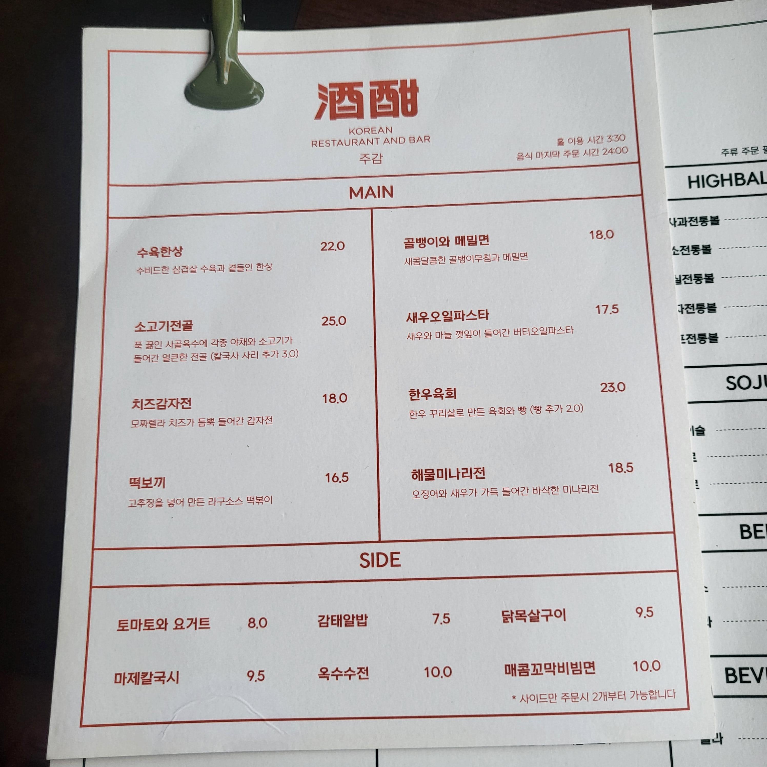 영업시간: 매일 (17:00 ~ 01:00), 라스트 오더(00:00)