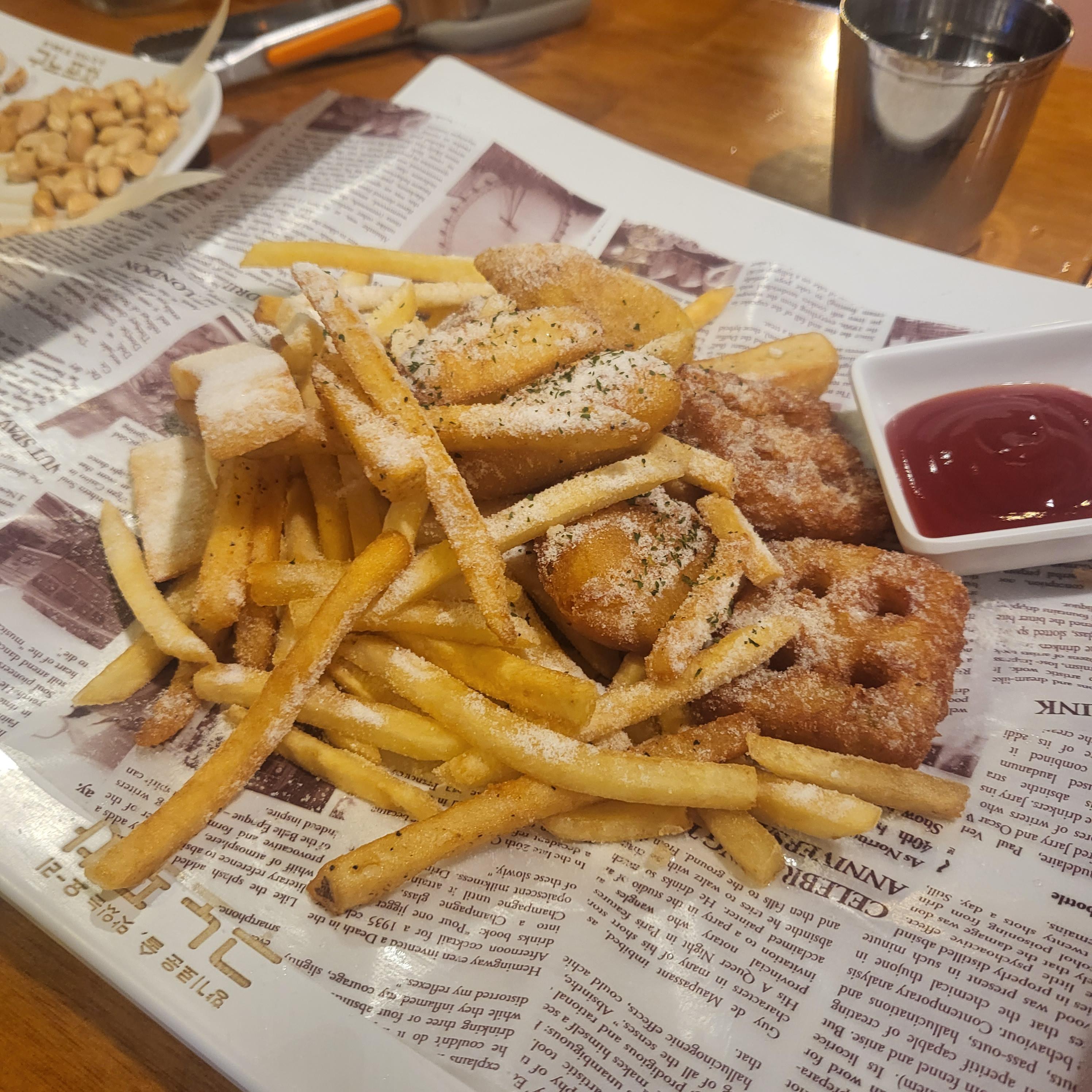 먹다 보니 안주가 부족해서 감자튀김도 시켰습니다...