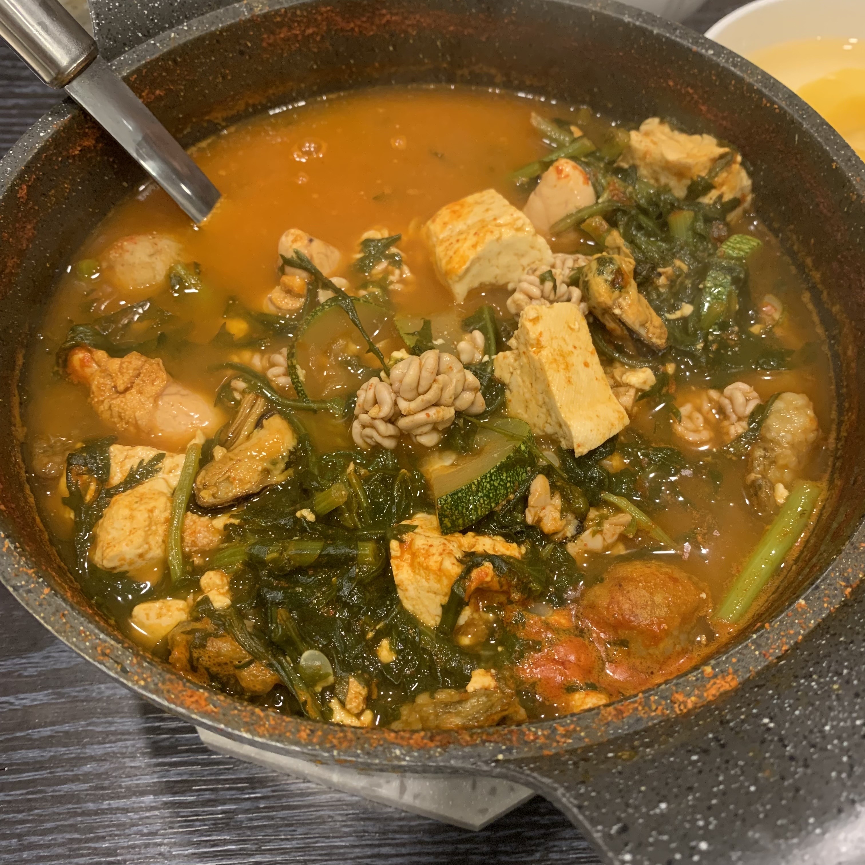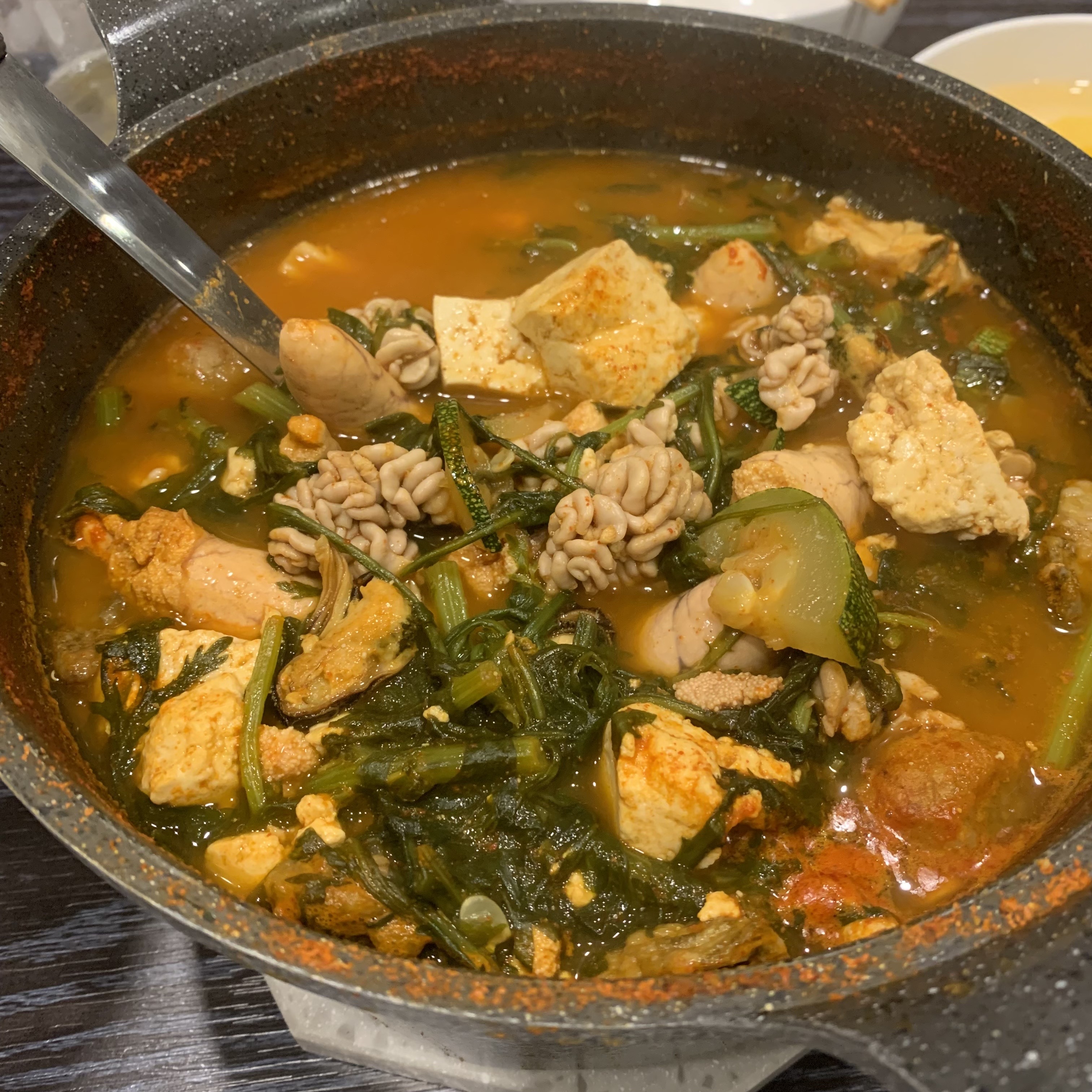 적당한 표현을 찾기 힘들지만 매운탕 + 해물탕의 중간 정도 맛이 나는데