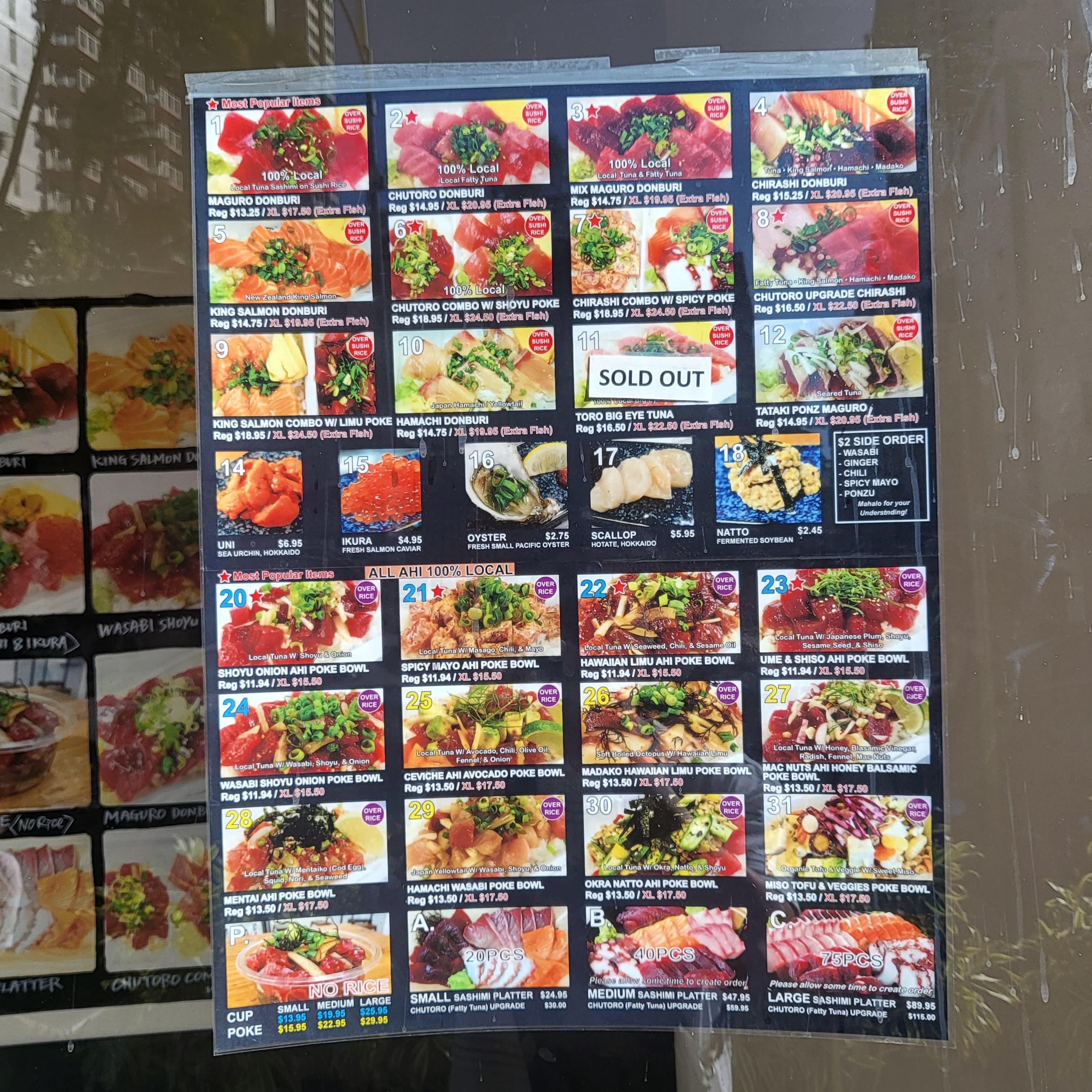 메뉴는 돈부리 종류와 포케, 사시미가 있었습니다.
