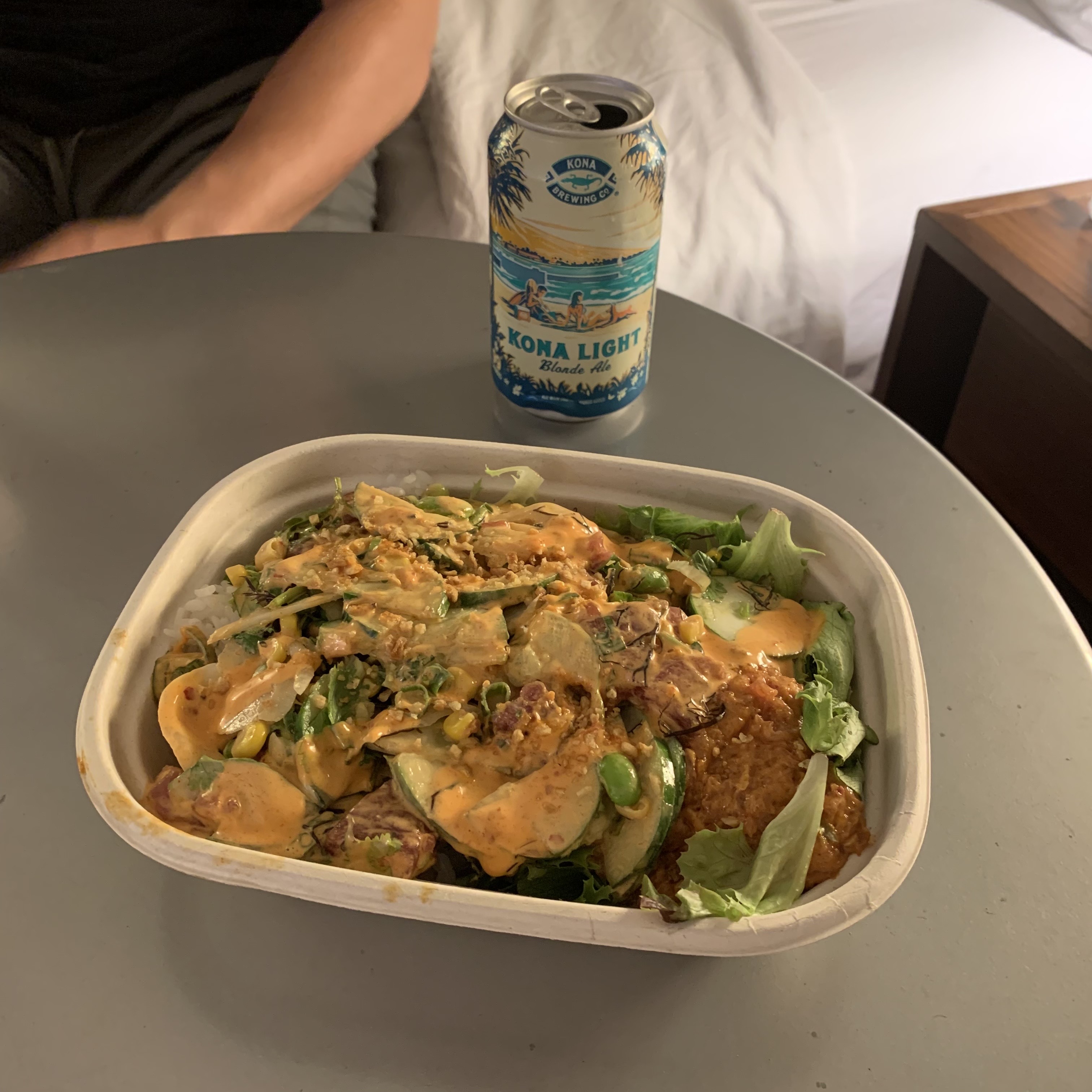 숙소에 와서 하와이안 맥주와 함께 먹어보았습니다.