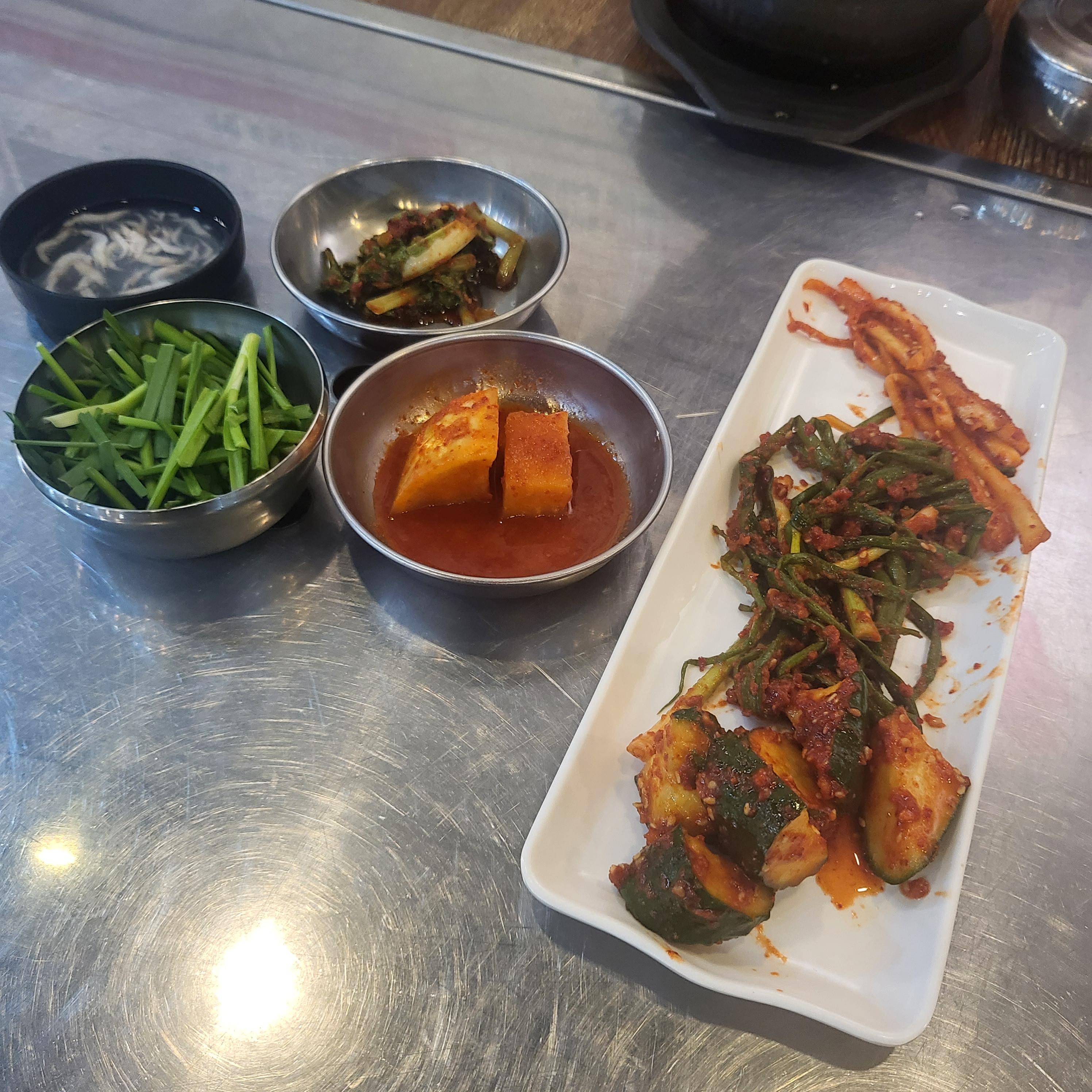 밑반찬은 기본적으로 부추, 깍두기, 열무김치가